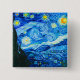 Botón que muestra la pintura al óleo de Vincent van Gogh La noche estrellada (1889). Inspirado por su estancia en un asilo, el arte representa un pueblo bajo un cielo nocturno de estrellas y luna azul y amarilla. Un gran regalo para los aficionados al post-impresionismo y al arte holandés.