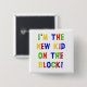 El texto de los colores primarios lee al "nuevo niño en el bloque" en las nuevos camisetas, monos, bolsas de asas, pegatinas, tarjetas, y más del niño.