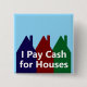 El texto del gorra dice que pago dinero por casas. Puede editar el texto si lo desea. Las fotos de una casa roja, una casa azul y una casa verde están detrás del texto.