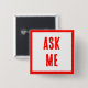 Botones rojos y blancos "Pregúntame" para voluntarios, profesores, organizadores de eventos y ocasiones especiales.
