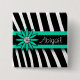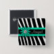 Flor azul turquesa con diamante gráfico en el centro, área de placa con nombre en negro y azul para personalizar su nombre y fondo de patrón de huella de cebra en blanco y negro. Un lindo regalo femenino para una chica o mujer en su cumpleaños o graduación.