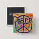 los colores intrépidos brillantes en esta pintada festiva mecanografían el botón del arte que lee simplemente "paz" perfecciona para cualquier personalidad del hippie