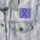 El pasador de reconocimiento muestra la pintura de una cinta de reconocimiento azul y púrpura sobre un colgante de botón personalizado. El azul y el morado muestran apoyo a la toma de conciencia de la artrosis pediátrica y la artritis reumatoide. Las cintas de reconocimiento de rayas azules y violetas se pueden personalizar con mensajes personalizados para crear botones de causa para los pendants de recaudación de fondos para cáncer u otras causas, regalos de prendedores de conciencia u otros eventos especiales de pendant o clavija de solapa de concientización para ocasiones de causa.