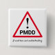 Este botón fue diseñado para promover la comprensión de la PMDD. Tiene un triángulo de advertencia rojo con un signo de exclamación y PMDD en negro. Debajo del triángulo están las palabras, en escritura: Necesito amor y entendimiento. Es para ti usar en esos días malos. La redacción del guión puede modificarse o eliminarse. Esta insignia ha sido diseñada para crear conciencia sobre la PMDD - Trastorno disfórico premenstrual - que afecta al 3-8% de todas las mujeres menstruantes. Es similar al Síndrome Premenstrual, pero es mucho, mucho más grave, lo que causa irritabilidad grave, depresión o ansiedad. Se cree que la PMDD está subdiagnosticada, por lo que es importante dar a conocer los síntomas más ampliamente y brindar apoyo a quienes sufren.