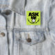 Pregúntenme que estoy feliz de ayudar, slogan texto en negrita y servicio al cliente sonriente o insignia de ayuda. Hágale saber a sus clientes o al público que están disponibles para ayudar con este texto simple y brillante, pídeme diseño. Hay otras opciones de color disponibles. Diseñado por www.mylittleeden.com