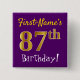 Chapa Cuadrada Purple, Faux Gold 87th Birthday, con nombre person