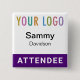 Chapa Cuadrada Púrpura Attendee Badge Event Logo Pinback Square