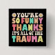 Sarcástico retro groovy divertido diseño de citas que son tan graciosos gracias a todo el trauma. Increíble traje de chiste de trauma sarcástico para los amantes del sarcasmo y los chistes divertidos, papá, mamá, abuelo, abuela, hermana, hermano, tío, tía, amigo, colega... chiste de ropa groovy para dar como regalo en cumpleaños, día del padre, día de la madre, día de los padres, día de la mujer, día del profesor.. Excelente como tejo para el exterior, camping, deporte, playa, escuela, trabajo, reunión, boda,