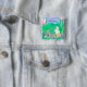 Un pasador de botón de bonito para usar en Pascua con un conejo blanco escondido detrás de tulipanes rosas suaves en un parche de flores de croco morado y huevos decorados ilustrados con acuarela. ¡Ideal para regalos de los clientes o para una colección de botones!