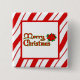 Botón cuadrado con una imagen de rayas de menta de menta roja y blanca y un centro blanco con un borde rojo. Personalizable. Vea el encanto redondeado, el llavero acrílico cuadrado de un solo lado, el collar cuadrado y el reloj de muñeca. Vea toda la colección Navidades Botones y pines en la categoría ACCESORIOS de la sección VACACIONES.