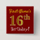 Chapa Cuadrada Red, Faux Gold 16th Birthday, con nombre personali