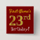 Chapa Cuadrada Red, Faux Gold 23rd Birthday, con nombre personali