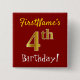 Chapa Cuadrada Red, Faux Gold 4º cumpleaños, con nombre personali