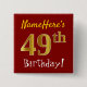 Chapa Cuadrada Red, Faux Gold 49th Birthday, con nombre personali