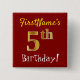 Chapa Cuadrada Rojo, Faux Gold Quinto Cumpleaños, Con Nombre Pers