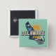El botón de retroceso de clavija presenta un gráfico pintoresco de estilo retro de la silueta de estado de Delaware sobre el fondo acuático.
