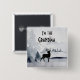 Soy el botón de la abuela con una imagen de acuarela que muestra un reno negro de silueta entre algunos pinos. Combinación de colores neutros en blanco y negro gris.