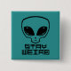 ilustracion de cabeza alienígena personalizado con grandes ojos oscuros con letras de "Stay Weird". Palabras clave: alienígena, espacial, marciana, personalizado, humor, vector, ciencia ficción, estadía, raro