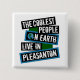 This design features bold, layered text with the phrase "The Coolest People on Earth Live in Pleasanton" in a striking cool color palette. A globe graphic, integrated with coordinating blue and green blocks, symbolizes the city's global appeal. The design is suitable for showcasing local pride, as it boldly declares Pleasanton's unique charm as a popular city in the northern California area. Colorful eye-catching visuals serve to foster a sense of community and identity among residents.