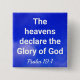 A square button, this item has "The heavens declare the Glory of God" "Psalm 19:1" written in big bold white text. The background is a picture of a beautiful blue sky. Order yours today!
