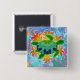 Tortuga de mar verde pintada contra llamas y un fondo azul abstracto.