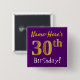 ¡Las características del este diseño cuadradas simples del botón un mensaje tienen gusto "del trigésimo cumpleaños del Nombre-Aquí! ", con "el trigésimo" teniendo un falso/una imitación oro-como mirada del colorante, en un fondo coloreado púrpura. El nombre puede ser personalizado. Los botones como éstos se podrían quizás llevar por las huéspedes en una fiesta de cumpleaños para alguien que está celebrando su trigésimo cumpleaños, donde están llevando a cabo al fiesta en una área extensa con las porciones del otro presente de la gente (tales como un parque de la ciudad o un parque temático). [~Z0000166]