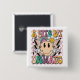 Un poco dramático Gramny Groovy Saying Typography Button presenta el texto "Un poquito dramático" en la tipografía moderna sobre un fondo de tablero de ajedrez rosa con flores gruesas, pernos de iluminación y una cara sonriente. Diseñado por Evco Studio www.zazzle.com/store/evcostudio