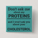Este minimalista botón divertido, con la frase "No me preguntes por mis proteínas y no te preguntaré por tu colesterol" con letras negras sobre un fondo verde claro del mar, es el regalo perfecto para cada vegetariano. Para solicitudes de personalizados, no dude en ponerse en contacto conmigo en zolicestore@hotmail.com (por favor, espere entre 1 y 2 días hábiles)