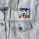 Este botón cuadrado presenta una vibrante pintura artística de un perro recuperador de oro sonriente, que lleva un gorra y gafas negras de nerd.