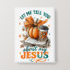 Diseño pacífico y colorido con una escena otoño/otoño con un libro abierto, calabaza y café. El colorido texto inspirador dice: "Déjenme contarles acerca de mi Jesús". Este diseño está disponible en una amplia variedad de productos.