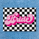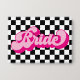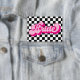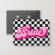 Crea tu propia tipografía de estilo retro rosa caliente y rosa "Novia" contra un patrón de tablero de ajedrez de personalizable en un botón rectangular de respaldo para tu fiesta de soltera. Puede cambiar los cuatro colores de los gráficos vectoriales para que coincidan con los colores de la paleta boda. Personalizar con texto del sistema para crear su propio diseño personalizado.