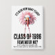 Rompa el hielo en tu reunión de clase de los 40 años más con este gracioso botón de reunión de personalizados flamingo que presenta las hilarantes líneas: "¿Ha sido CUÁNTOS años?" seguido de "¿Recuérdame?" y en una estrafalaria letra pequeña al final: "Olvidemos la pequeña charla. Solo nos queda mucho tiempo". Este clavija de reunión de clase de flamingo es perfecto para compañeros de clase que quieren un poco de diversión, sarcasmo y honestidad en su tan esperada reunión. Genial para reuniones del 40 (o más tarde) año en las que los recuerdos se están desvaneciendo pero el sentido del humor sigue fuerte, aunque un poco oscuro. Personalizar el año para igualar a tu clase graduada (por ejemplo, "Clase de 1986" o anterior) o deja espacio para nombres escritos a mano. Una reunión divertida y memorable que hará hablar a todos.
