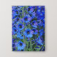 Insignia con foto de flores de delfinio azul