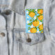 Cuenta con un diseño de jardín de árbol naranja en los botones