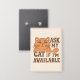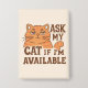Un gato naranja con una expresión gruñona acompañada de la frase "Pregúntale a mi gato si estoy disponible" con letras divertidas y llamativas. Perfecto para los amantes del gato que saben que sus felinos siempre tienen la última palabra. Ideal para los amantes de las impresiones con humor sarcástico y un estilo relajado.