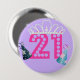 ¡El botón lindo conmemora el 21ro cumpleaños! Fondo purpúreo claro con las rosas fuertes 21. Veinte está llevando una tiara tachonada diamante brillante. Hay también dos gorras de la fiesta de cumpleaños en sombras del azul. Este botón de la tiara de la princesa del chica hace un gran pequeño regalo para el 21ro cumpleaños de los someones o como favor de fiesta. ¿Noche de los chicas hacia fuera para celebrar un 21ro cumpleaños? ¿Por qué no tenga un botón para cada persona en su fiesta a llevar?