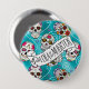 Un diseño de botón colorido para las festividades del Día de los Muertos, con una variedad de cráneos decorativos de azúcar con acentos florales y giratorios sobre un fondo azul turquesa de efecto texturizado. Si prefiere un patrón de cráneo plano, se puede eliminar la capa de texto 'Dia de los Muertos' proporcionada. Busque ID725 para ver otras opciones de color y productos con este divertido patrón.