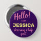 ¿Cómo puedo ayudarle con el botón Nombre comercial morado? Una etiqueta de nombre simple y amigable sobre un divertido botón colorido. Una buena forma de satisfacer a sus clientes con un espíritu alegre y acogedor.