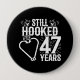 Este divertido diseño de aniversario de 47 bodas es perfecto para las parejas de pescadores que han estado casadas durante 47 años y que aún están enganchadas unas con otras y les encanta ir a pescar. ¡Genial para una fiesta del 47 aniversario del boda para celebrar los 47 años de matrimonio! Presenta la cita del aniversario boda "Todavía enganchado después de 47 años" con anzuelos de pescado en forma de corazón con un gráfico de pescadores en un diseño de estilo vintage angustiado.