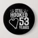 Este divertido diseño de 53 años de boda es perfecto para las parejas de pescadores que han estado casadas durante 53 años y que aún están enganchadas unas con otras y les encanta ir a pescar. ¡Genial para un fiesta del 53 aniversario de boda celebrar 53 años de matrimonio! Presenta la cita del aniversario boda "Todavía enganchado después de 53 años" con anzuelos de pescado en forma de corazón con gráfico de pesca en un diseño de estilo vintage angustiado.