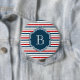 Diseño de temática náutica con decoración monográfica sobre fondo de rayas azules, blancas, rojas y grises