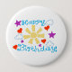 Enorme, 4 pulgadas, Redondo, Botón, con un ¡Feliz Cumpleaños!,Dibujo, y Diseño ,= ( del Sol y Nubes, y Corazones y Estrellas)= ( Dibujo, y Diseño , por P.J.M.).= Con el Fondo Blanco eliminado.= y el color Blanco , agregado a todo el Fondo.