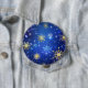 Chapa Redonda De 10 Cm Fondo azul XMAS con copos de nieve dorados