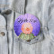 Cactus color de agua de melocotón florecen sobre un fondo morado y luces de hadas favorecen el botón del partido de novias. Haz uno para cada miembro de la fiesta de bodas o crea un memorable y duradero favor de fiesta.