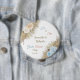 Elegante boho moderno pampas floral de género revelar El o Ella botón de fiesta de ducha de bebé con ilustracion acuarela de pampas hierba botánica con rosa rosa rosa rosado y flores azul polvorientas. Puede personalizar este hermoso botón con su propio texto.