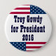 ¡Si usted piensa Trey Gowdy haría a un buen presidente, con su ningún estilo del absurdo, después éste es el botón para usted! La atracción de "Trey Gowdy para el presidente 2016" con la adición de las barras y estrellas patrióticas top y parte inferior, en un agradable limpia diseño. ¡Compre múltiplos y la reserva, en alrededor y estilos del cuadrado!