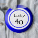 Una insignia de botón azul divertido con texto personalizado genial para los amantes del bingo, personalizar con una edad y un nombre o poner tu número de suerte en él. Haga clic en la imagen de abajo para ver más productos con temas de bingo