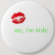 Abotone con los labios de los rojos en un fondo blanco que muestra que un beso y en verde el texto "me besa que soy irlandés!". Grande llevar el el día de St Patrick.