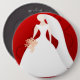 SOPORTE DE LA NOVIA CON BODA GOWN Y VEIL Y MANTENER BOUQUET DE FLORES EN UN FONDO ROJO