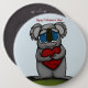 Este lindo oso koala con un gran corazón adorna este botón El día de San Valentín personalizado. Personalice este adorable botón de El día de San Valentín del oso de koala agregando su texto o dejándolo en blanco. Basado en una obra de arte original de © One Artsy Momma.